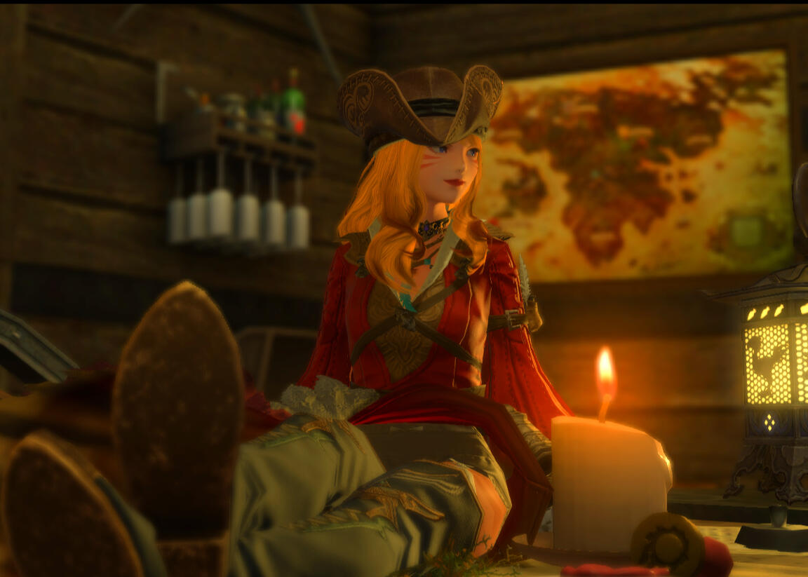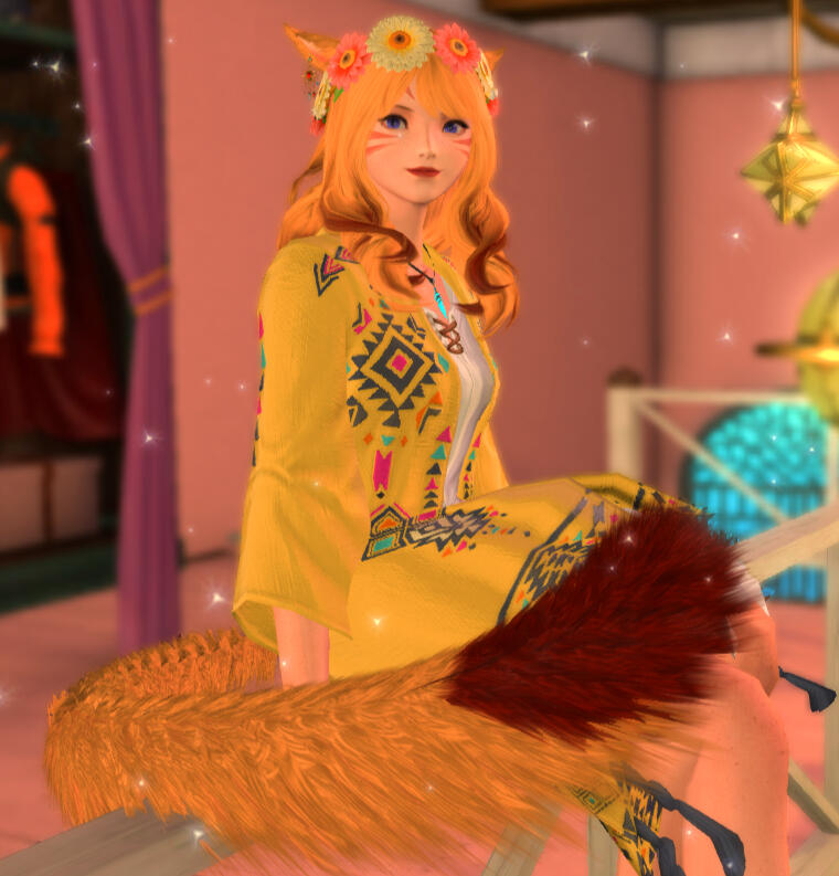 However, while she enjoyed the hunt, it wasn't her passion. Often when her tribe passed near Limsa Lominsa she would take trips into town. Unlike her fellow tribesmen, she loved interacting with the various travelers coming in and out of the city, and was taken in by the sea shanties she would hear, and the tales they would share. She particularly loved stories of famous singers and entertainers from other lands.